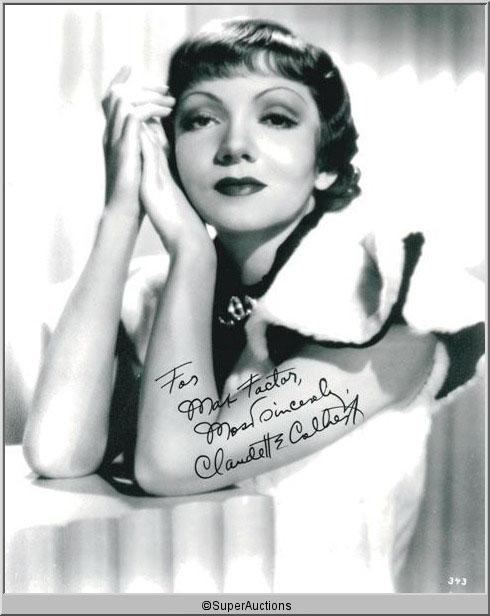 Claudette Colbert from The Max Factor Collection / (1) 8 x 10 Autographed Nitrate Negative No.. 343 / "For Max Factor, Most Sincerely, Claudette Colbert" / (1) 8 x 10 Black & White Photograph
