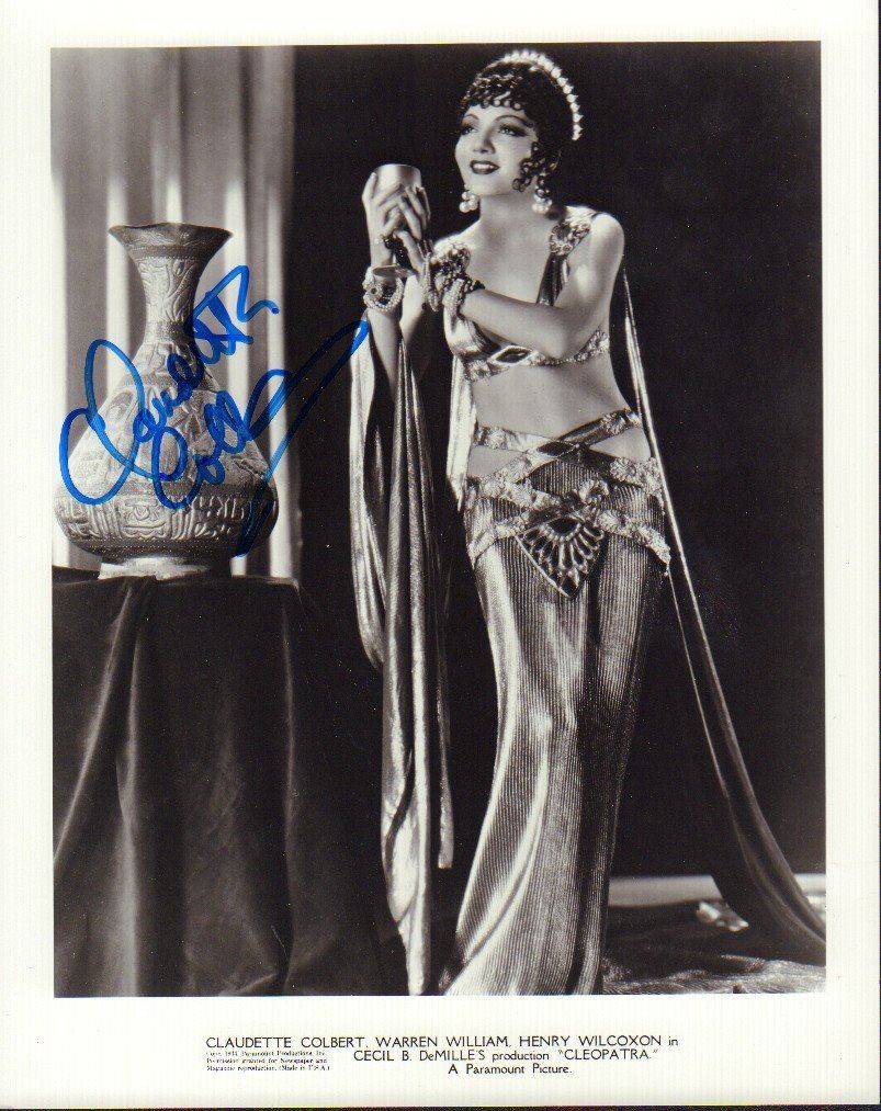 Black and white 8x10 photo from the original version of the film Cleopatra signed by Claudette Colbert. All items come with a certificate of authenticity good for the life of the piece.
