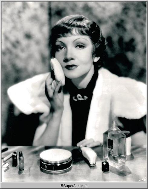 Claudette Colbert from The Max Factor Collection / (1) 10 x 8 Nitrate Negative No. 235 of Claudette Colbert Applying Face Powder Make-Up / (1) 7 x 9 Black & White Photograph