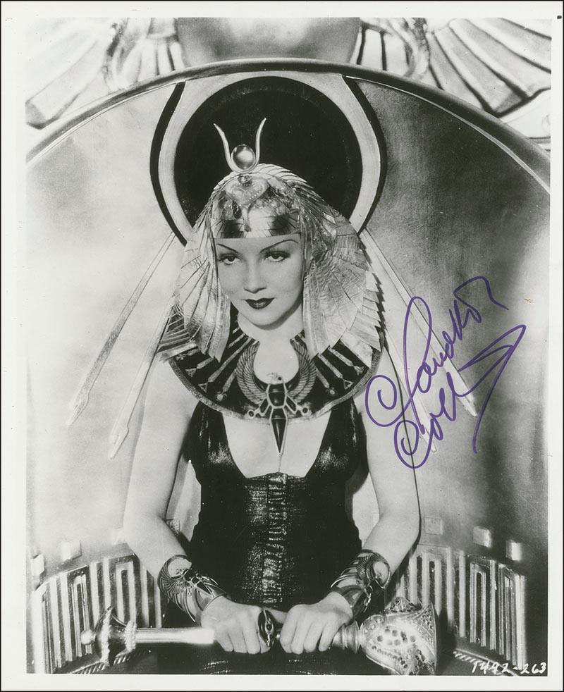 Glossy 8 x 10 photo of Colbert as Cleopatra, signed in purple felt tip. In fine condition.