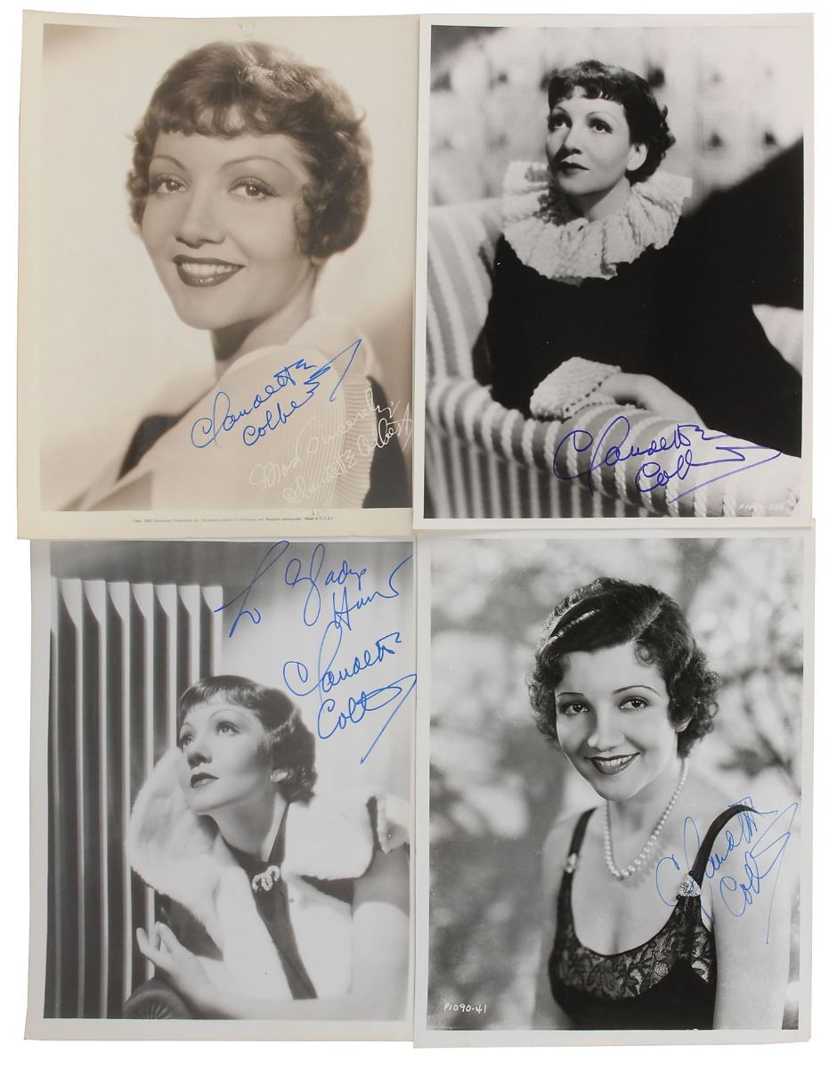 Set of four glossy 8 x 10 photos of the radiant Colbert, each signed in blue felt tip. In overall very good to fine condition.