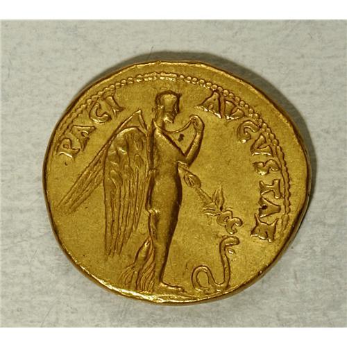 <B>Claudius.</B></I> A.D. 41-54. AV aureus (19 mm, 7.71 g). Rome, A.D. 46-47. Laureate head right / Pax-Nemesis advancing right, lifting fold of drapery and extending winged caduceus to serpent before. RIC 38; BMC 39; Cohen 57. <B>Good VF.</B></I> <I>Ex CNG 67 (22 September 2004), 1303.</B></I><BR><BR><b>Shipping:</b> Coin/Currency (<a target="_blank" href="http://www.heritageauctions.com/common/shipping.php">view shipping information</a>)