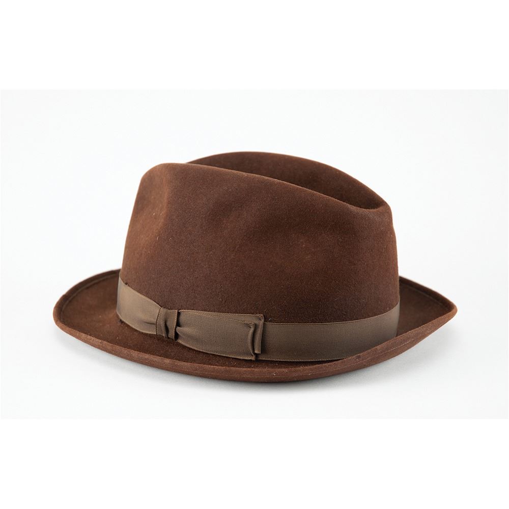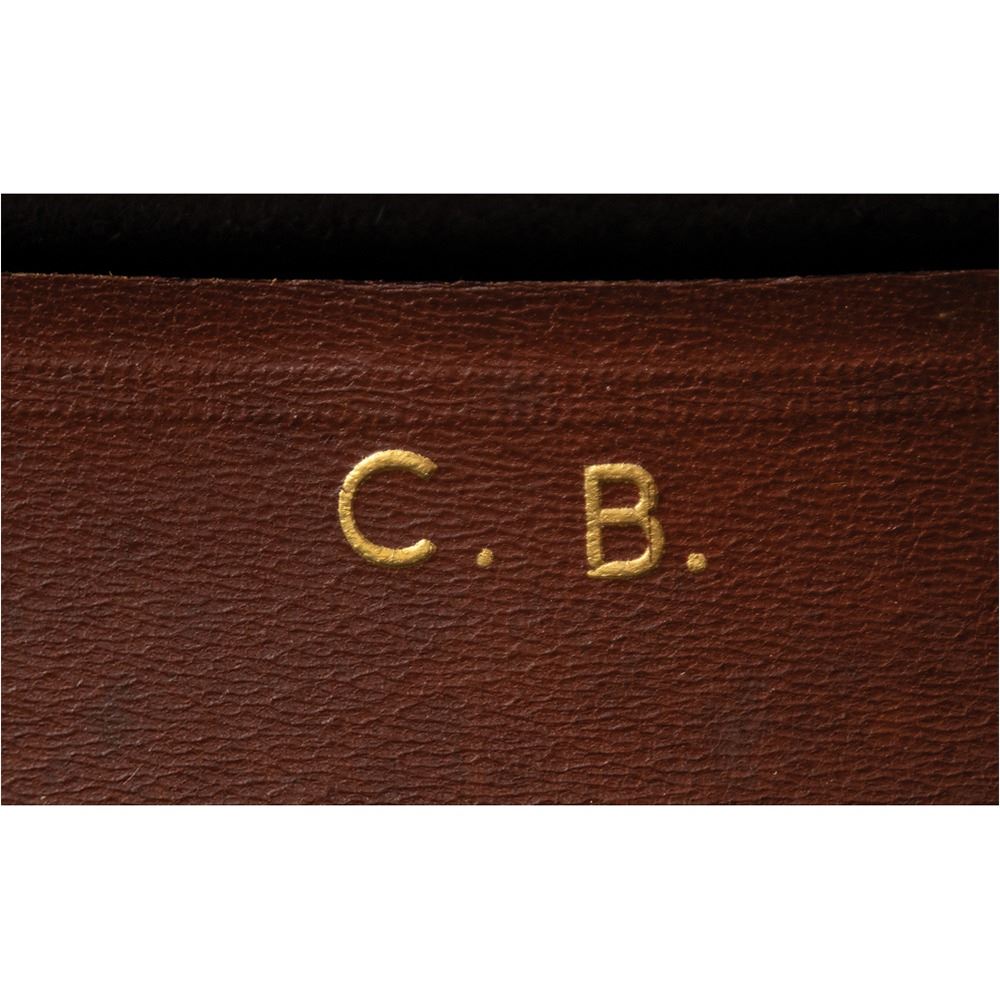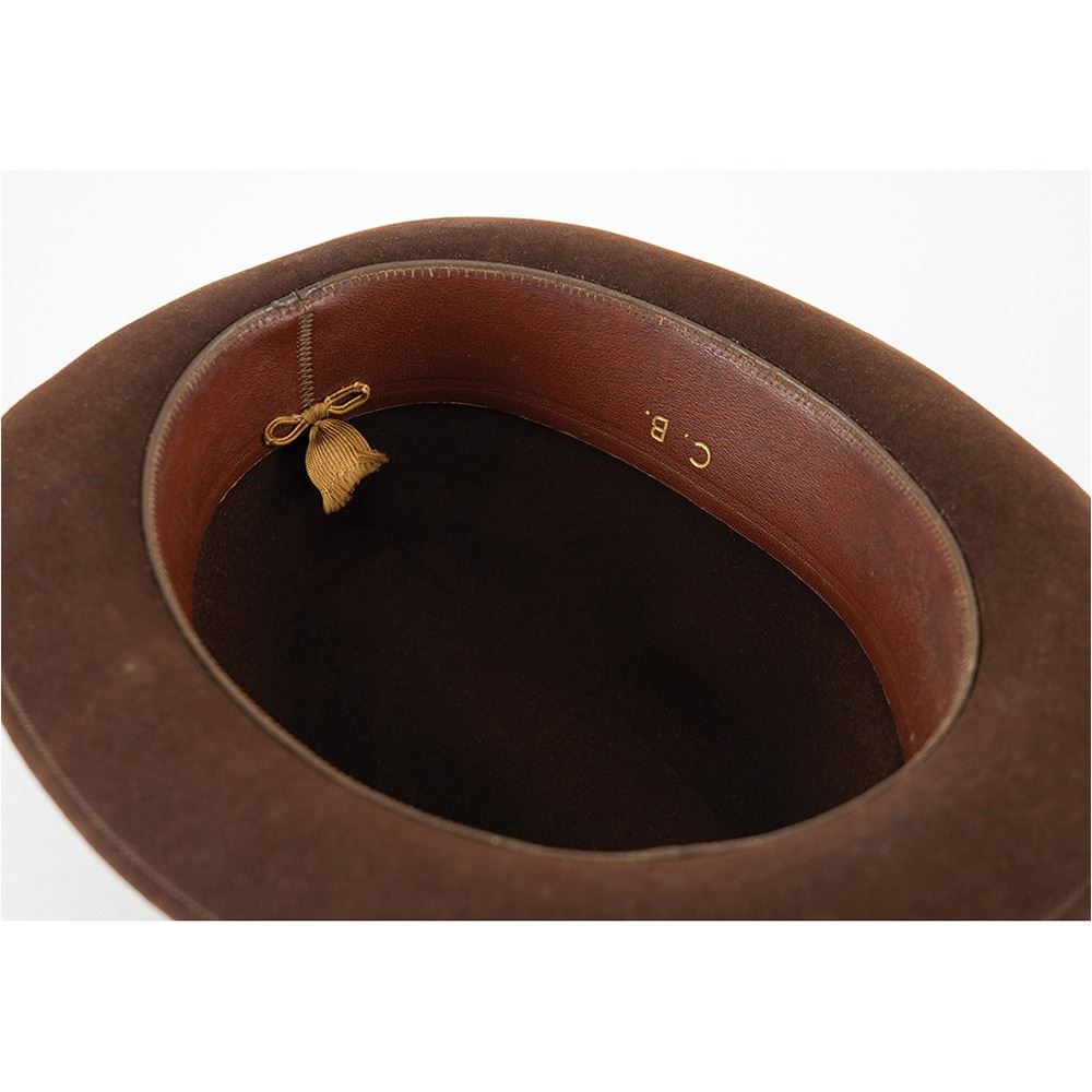 Controversial British socialite (1926–2019) who achieved worldwide notoriety when he was accused of attempting to murder his wealthy wife, Sunny von Bulow, with an insulin injection that left her in a coma for nearly 28 years until her death in 2008. The case and its surrounding fallout inspired the 1990 film Reversal of Fortune, for which Jeremy Irons won the Best Actor Oscar for his portrayal of Bulow. Brown Homburg hat personally-owned and -worn by Claus von Bulow during his 1982 murder trial in Newport, Rhode Island, and, after which, he presented as a parting ‘thank you’ gift to Newport police officer Al Conti, who served as von Bulow’s personal bodyguard during the nine-week trial. The inner leather band is engraved in gilt with von Bulow's initials, “C. B.,†with the opposite side bearing the maker’s stamp: “Scotts, By appointment to Her Majesty the Queen, Hat Makers, 1, Old Bond St. London, W. 1.†Included with the hat is a framed ‘thank you’ presentation that was given to Conti for his protection services during the trial, consisting of an engraved color print of the “State House, Newport,†with the surrounding mat signed and inscribed by von Bulow, “To Al, Claus von Bulow,†and by a variety of news reporters and media journalists who also covered the trial. The presentation is framed to an overall size of 20 x 16. In overall fine condition, with fading to many of the insignificant signatures on the photo, but von Bulow's remains bold.