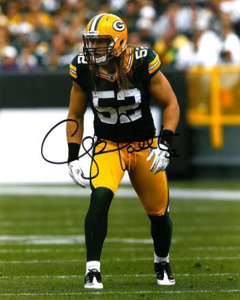 Clay Matthews scored his first career touchdown during a Monday Night Football game on October 5, 2009 against the Minnesota Vikings; Matthews stripped the ball from running back Adrian Peterson and ran the ball back for a score. in 2009, he was the first Packers rookie to earn a Pro Bowl selection since receiver James Lofton in 1978.In 2010, Matthews set the Packer record for most sacks in a single postseason with 3.5. In the Super Bowl, won by the Packers over the Pittsburgh Steelers, he recorded 3 tackles, a pass deflection, and a game changing forced fumble. On the first play of the 4th quarter with the Steelers driving to take the lead with the score 21-17 in favor of Green Bay and the ball on the Packer 33 yard line, he tackled Steelers running back Rashard Mendenhall, who fumbled the ball, recovered by Desmond Bishop. The Packers never lost the lead, winning their 4th Super Bowl title and first since Super Bowl XXXI (1996 season), 31-25. Clay Matthews have hand signed this Green Bay Packers 8X10 Photo. Certificate of Authenticity from Athlon Sports.