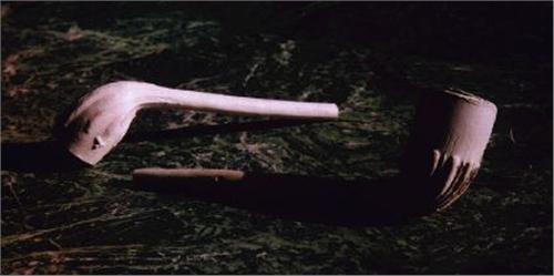 Clay Pipes. Two different linear designs along bowls. Civil War period. One 4", other 5". Excellent condition.
