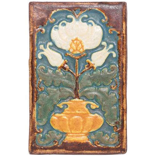Claycraft tile, attribution, detailed design of a potted plant, 4" x 6", minor chips to corners and edges