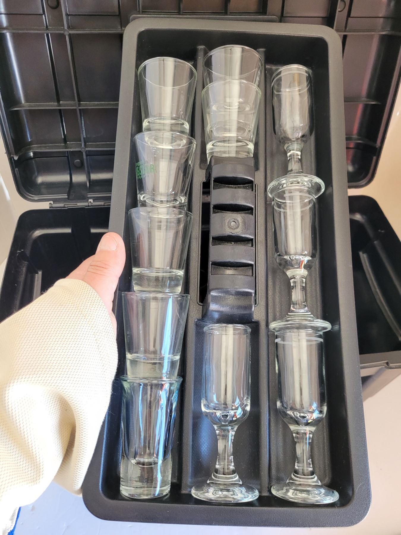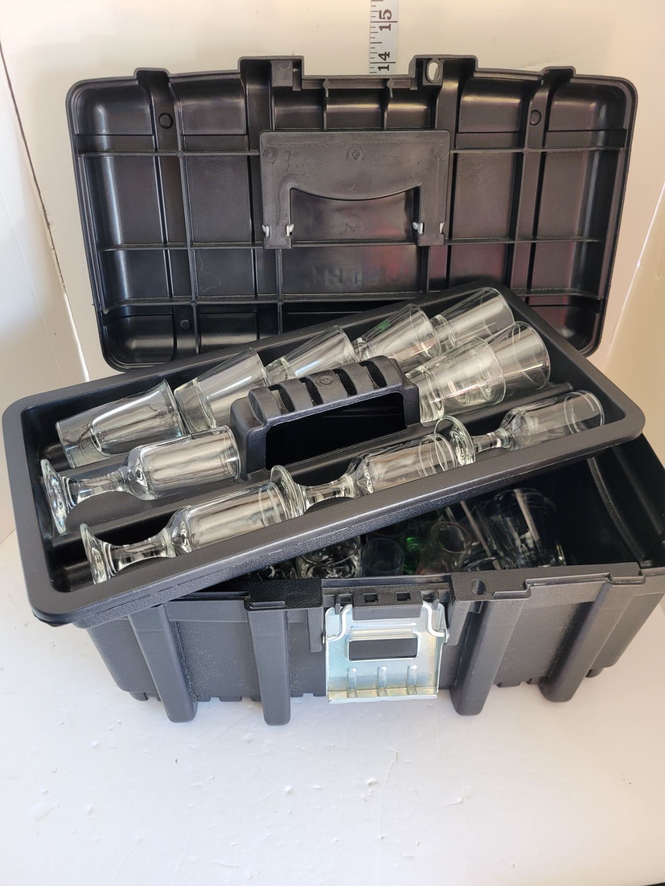 Clean Husky Tool Box with Variaous Shot Glasses Etc