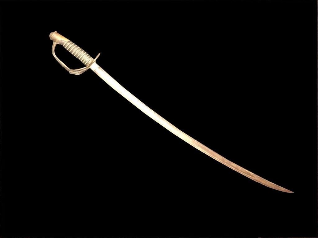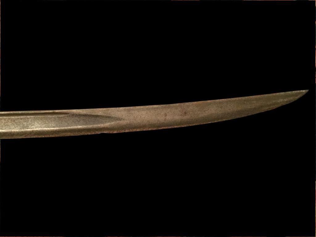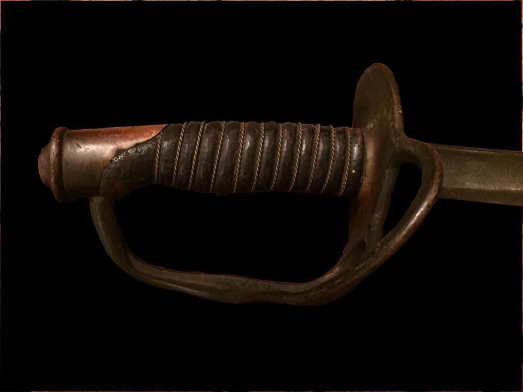 This is a true attic find. The date 1865 & inspector's mark "J.F." is clearly stamped on the ricasso. The reverse side has no marking, nor was it ever marked. the blade has a smooth surface, nice patina, & no pitting. The three banded guard has a beautiful patina, as does the pommel. The leather grip & twisted brass wire are perfect. No scabbard.
