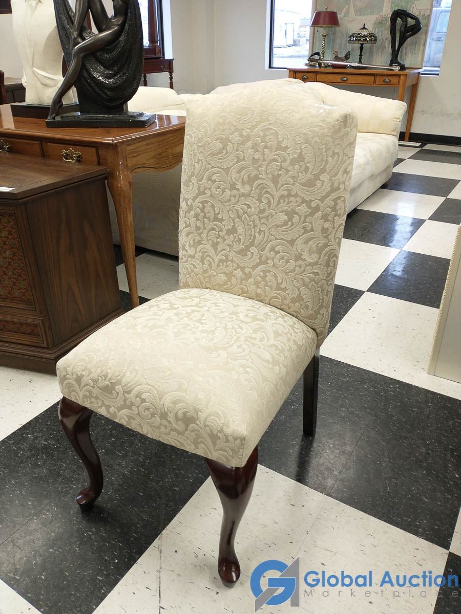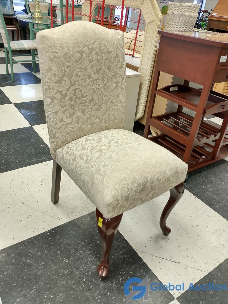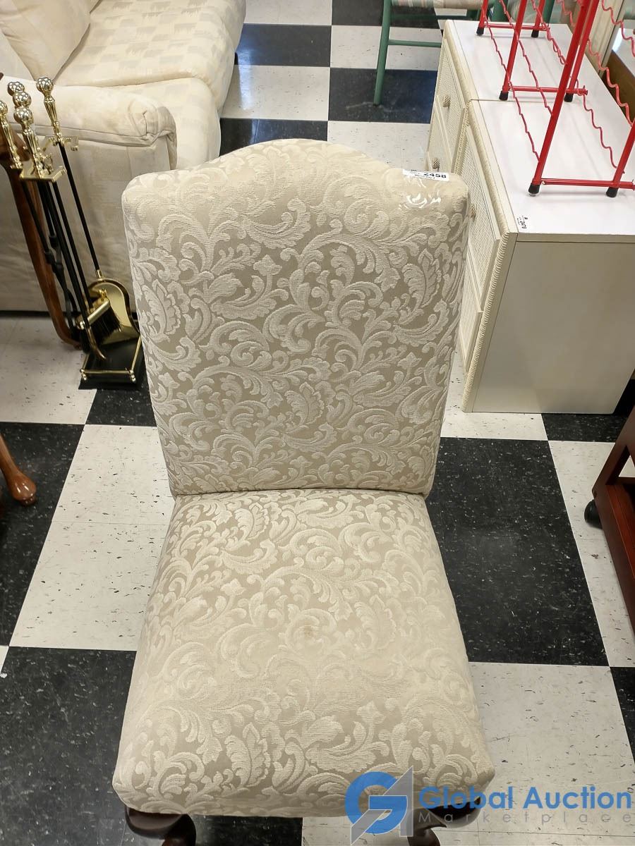 Clean Upholstered Ivory Coloured Chair w/Dark Wood Legs