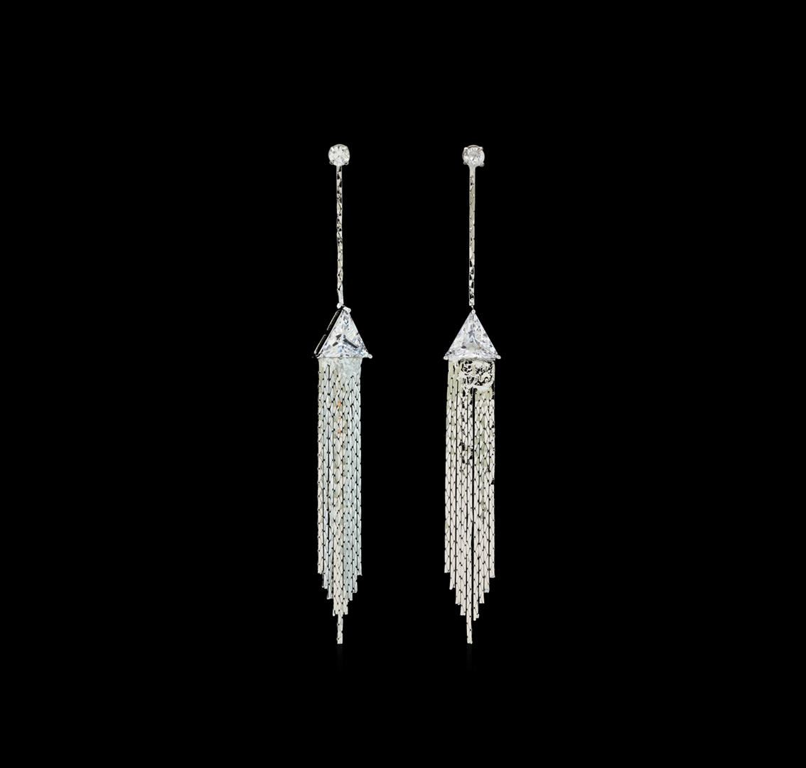 High end designer jewelry. Clear Crystal Earrings - Rhodium Plated. Rhodium Plated. Silver/ Clear. 2.5inch..