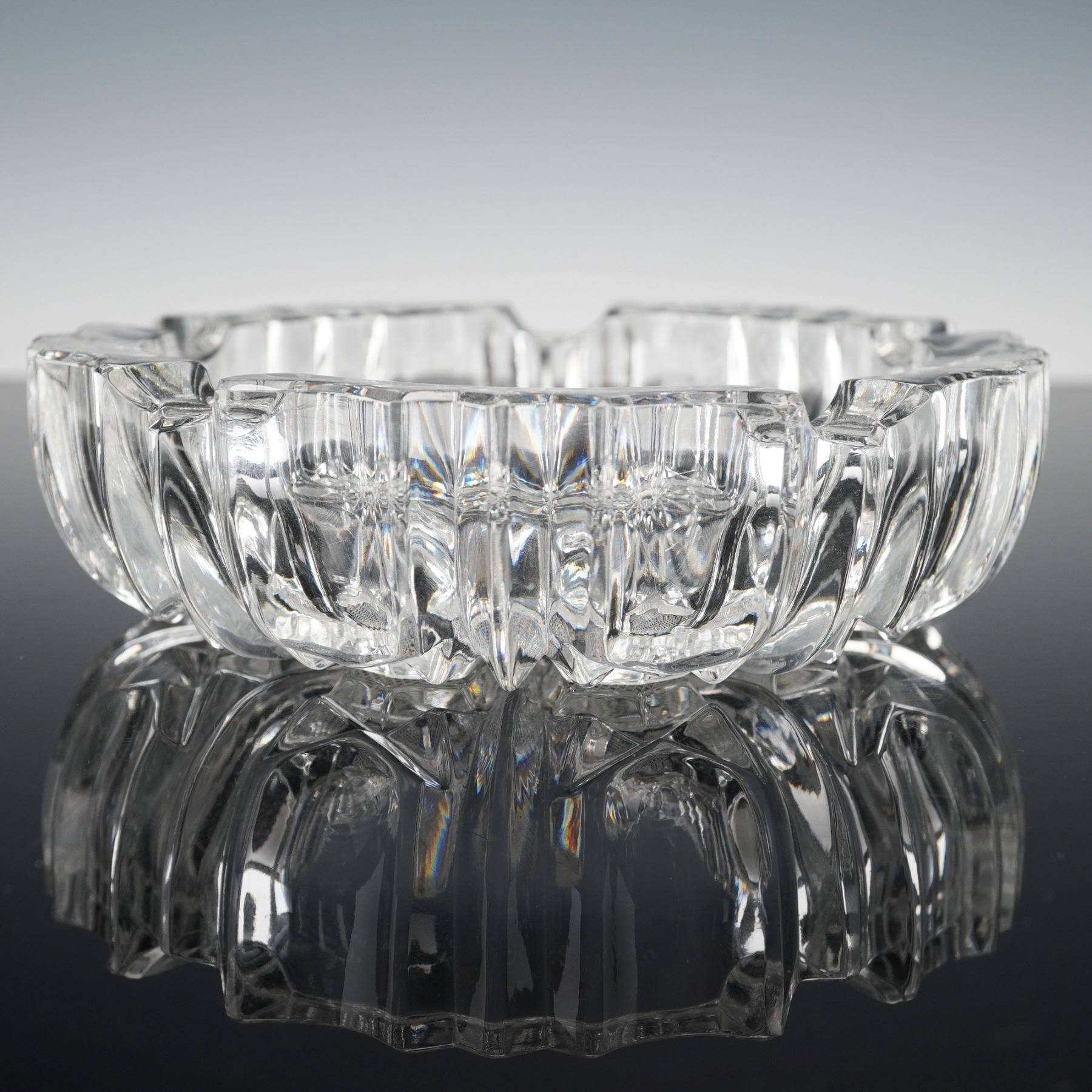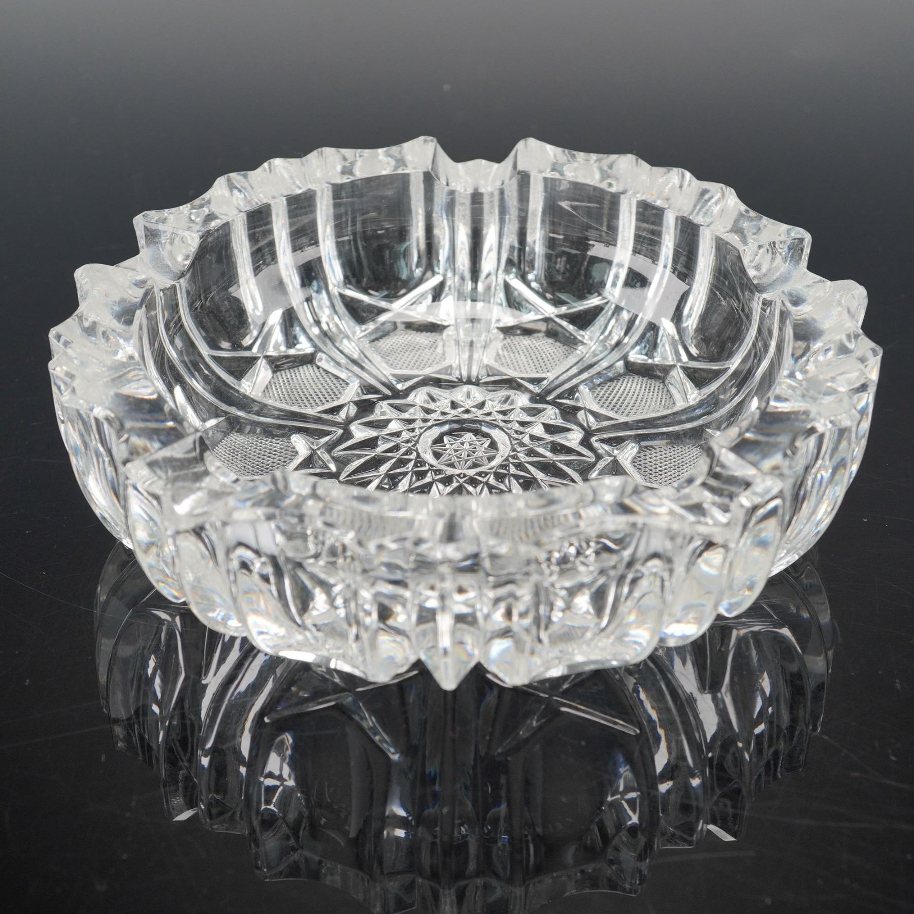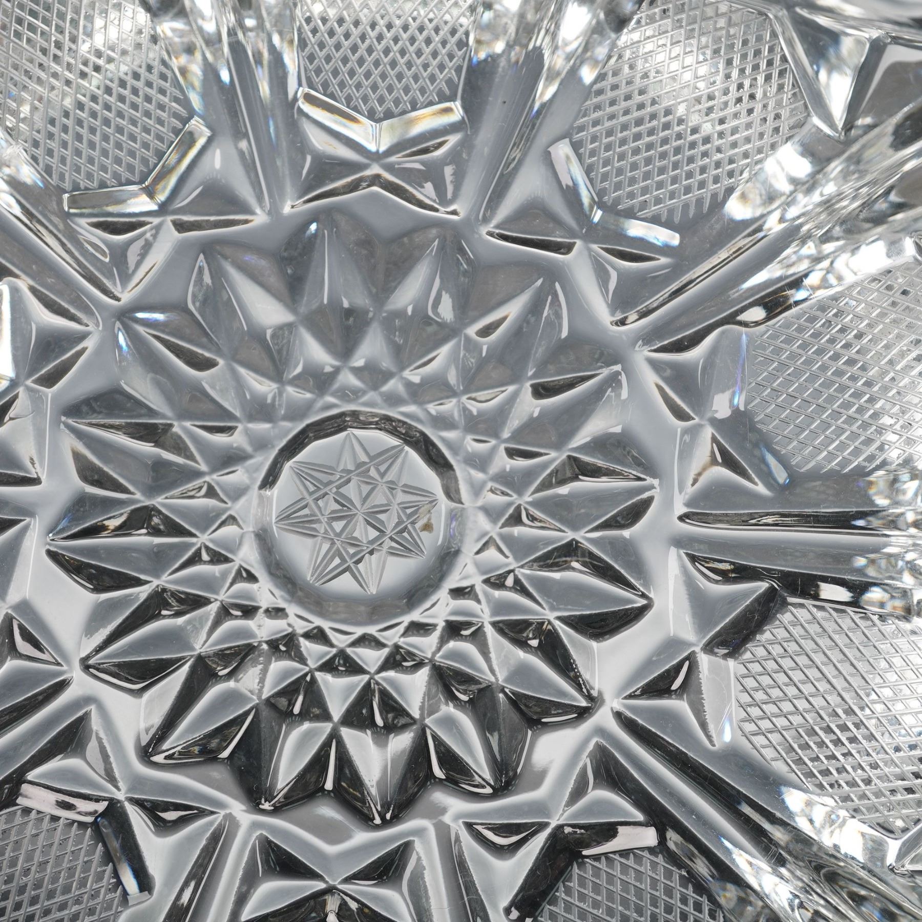 Featuring a deeply cut hobstar and fan design with a scalloped rim and starburst base. Finely crafted with crisp detail and excellent clarity.