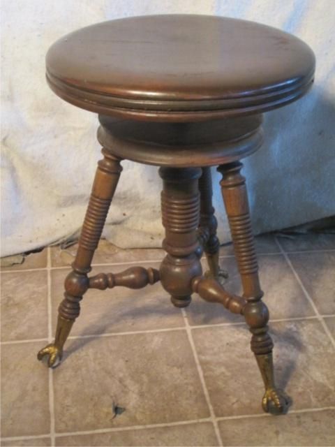 Clear Glass Ball, Brass Claw Footed Swivel Stool