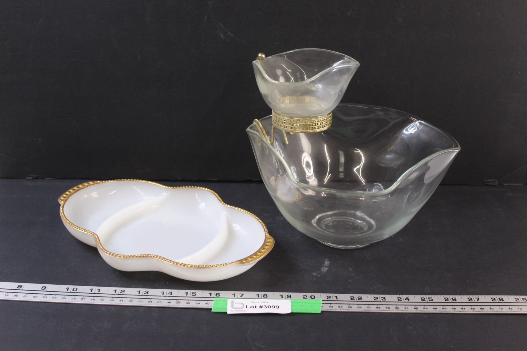 Clear Glass Chip & Dip Dish Set & Divided Serving Platter