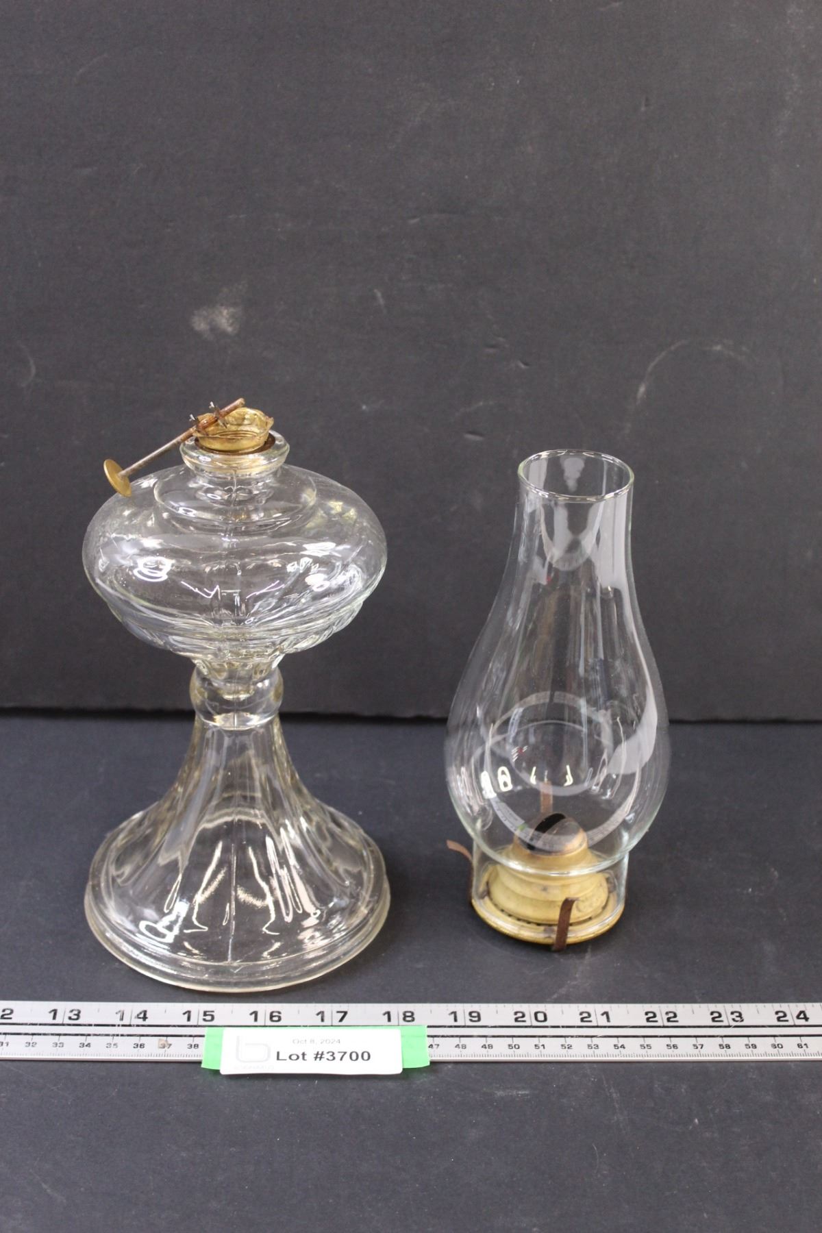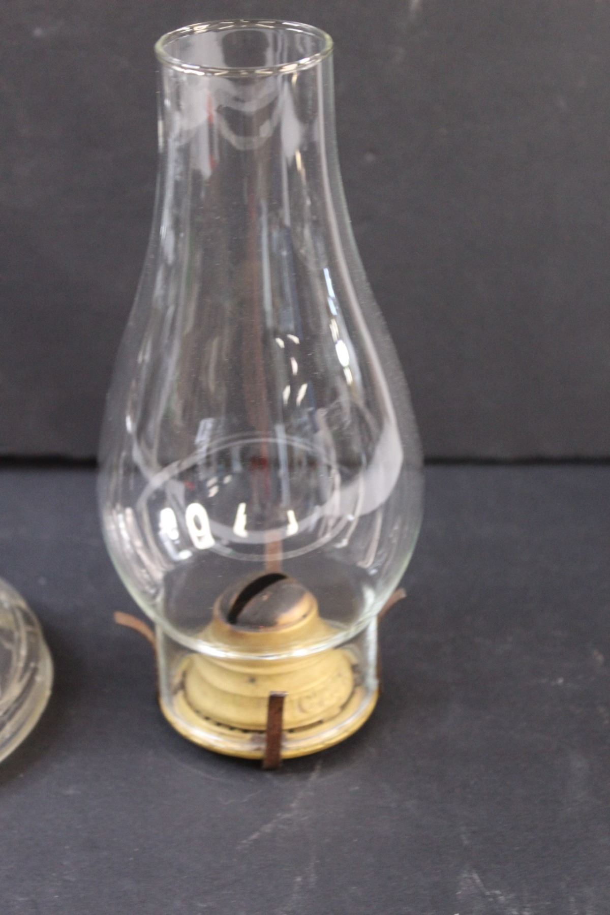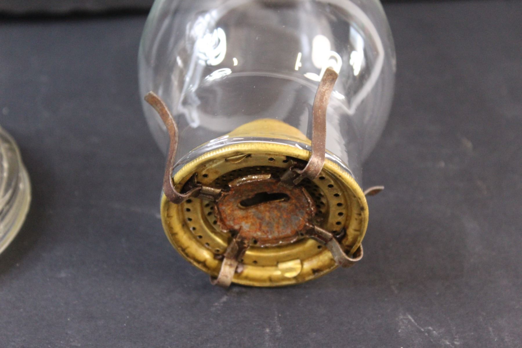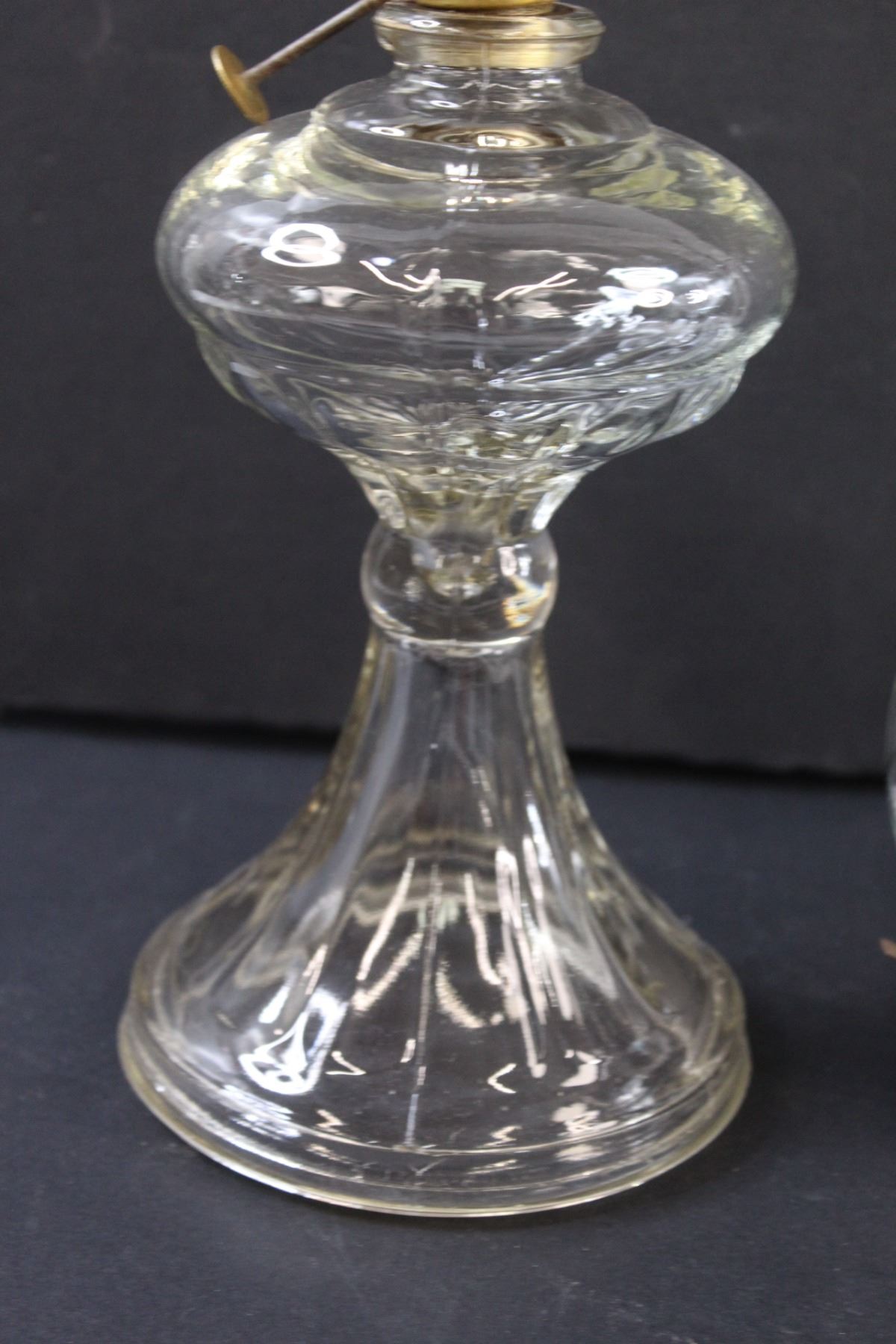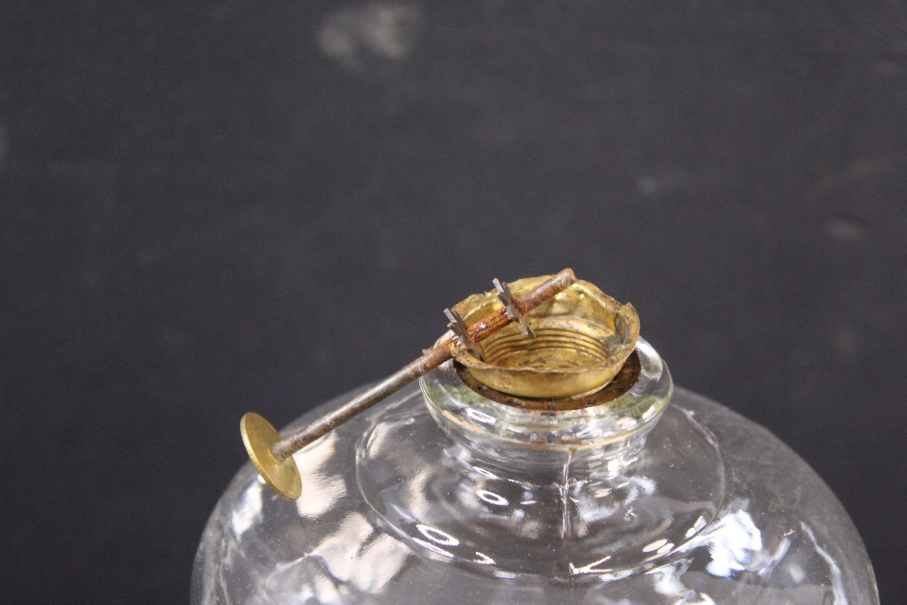 Clear Glass Kerosene Lamp (Needs Repair) - 8" x 5" (Base) & 8" x 3.5" (Lamp Shade Part)