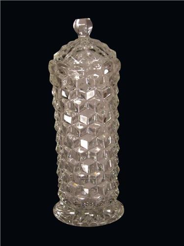 Clear Glass Straw Holder w/lid. Excellent condition, no chips or cracks. 12 1/2 inches tall.