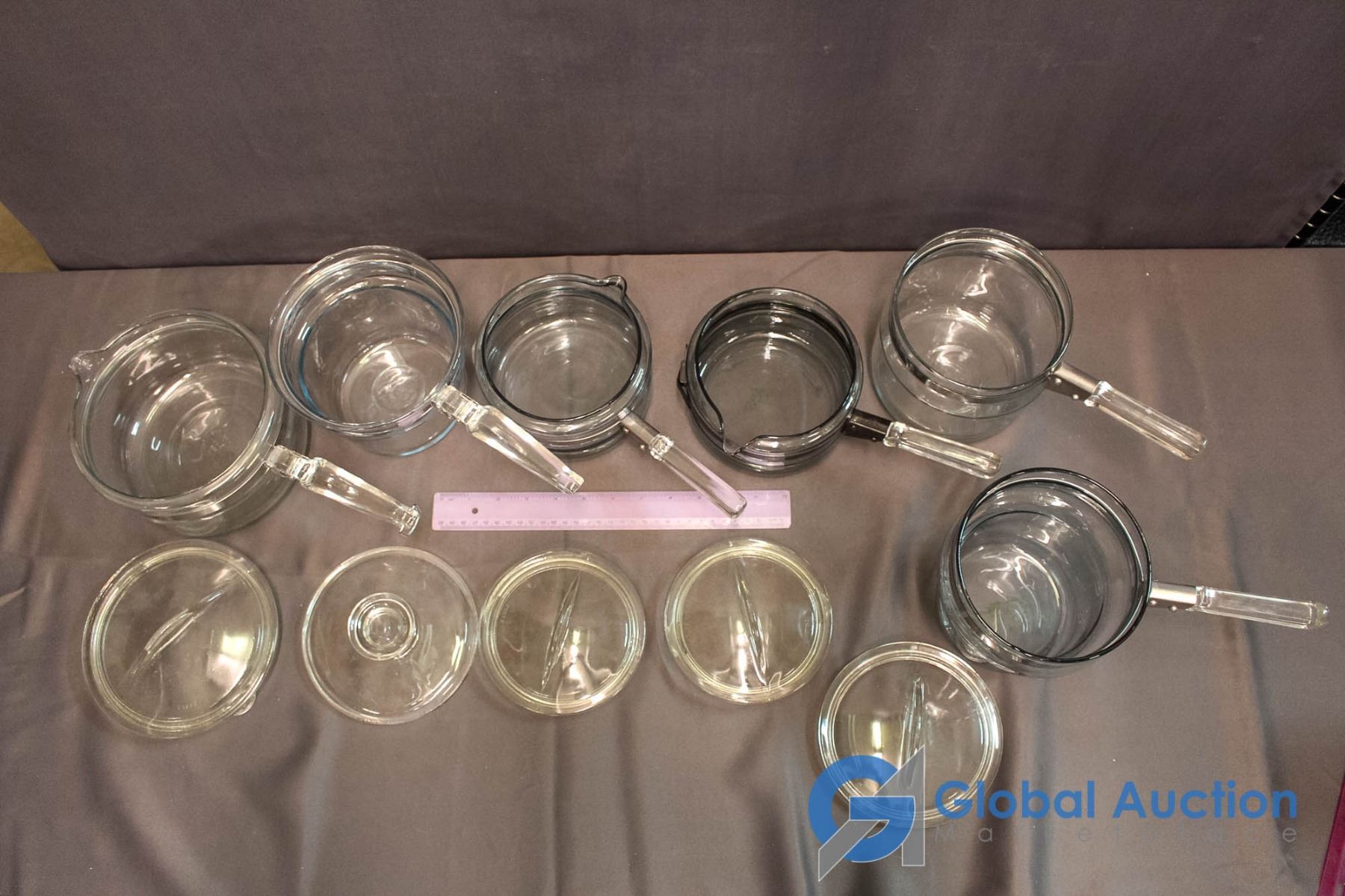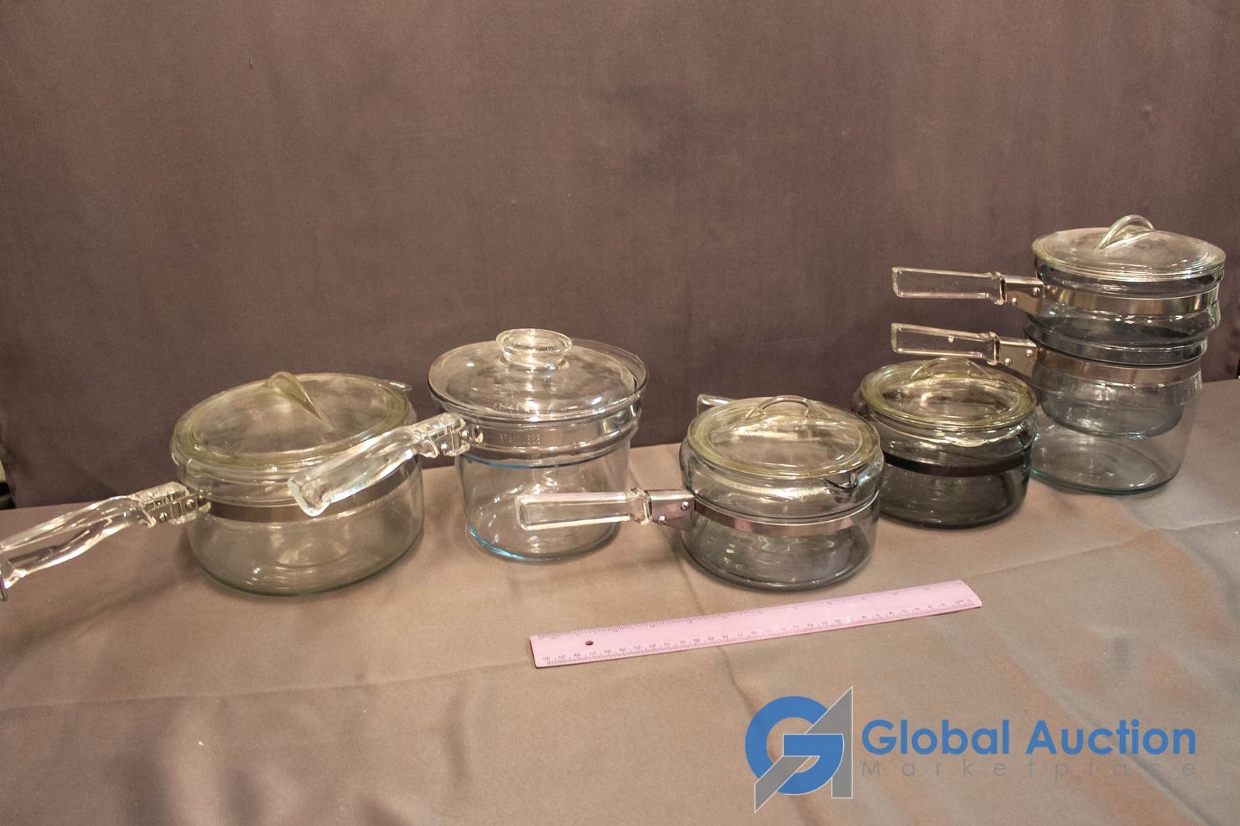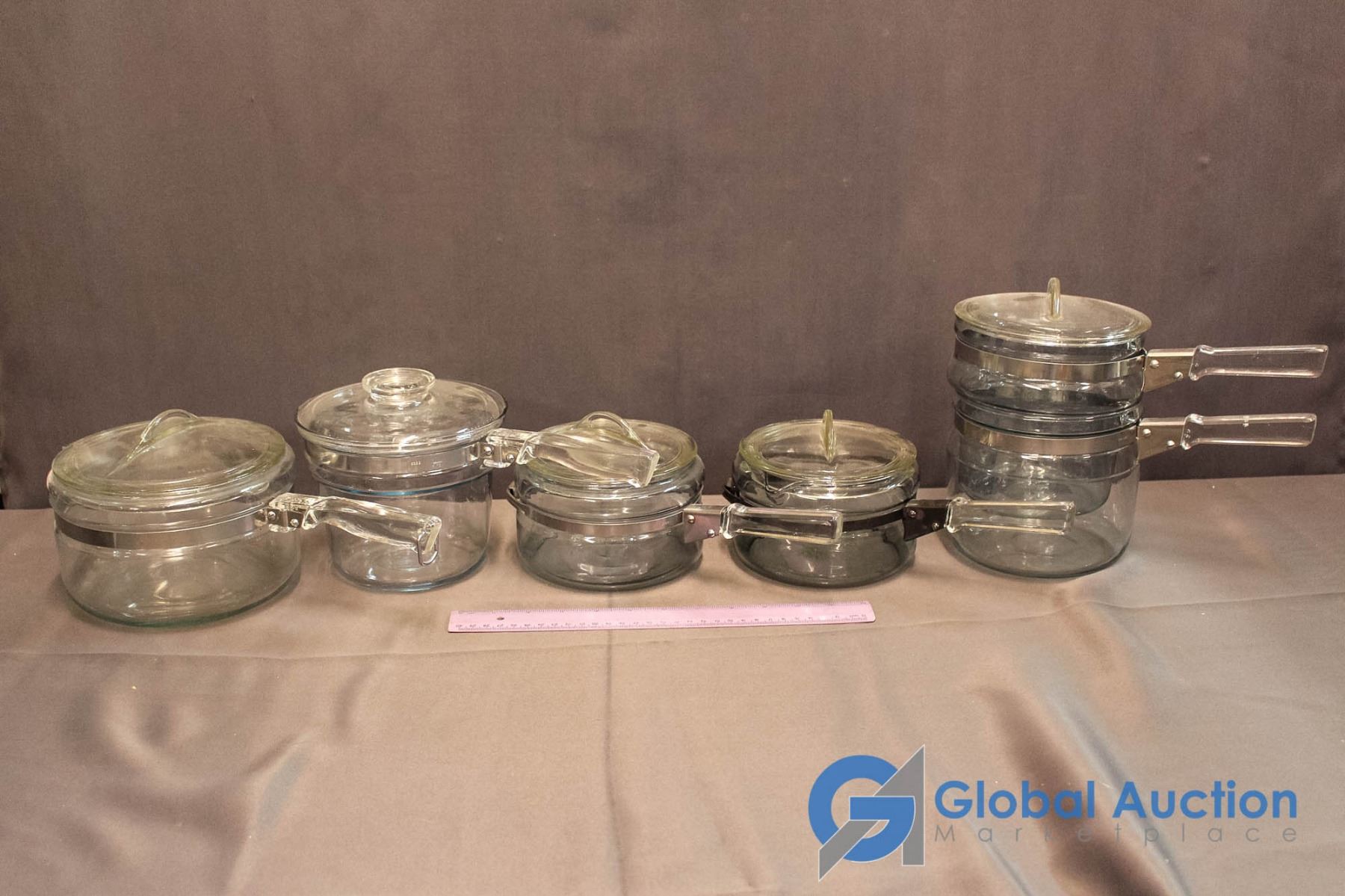 Clear Pyrex Kitchenware (3 Pots, 1 Double Boiler, 1 Extra Double boiler pot)