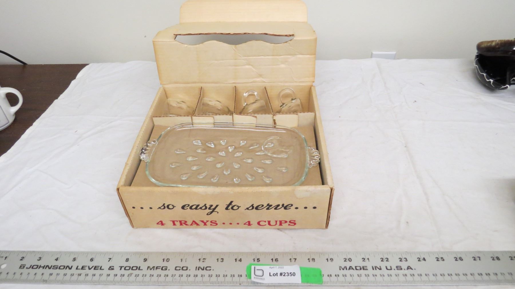Clear glass snack set - 4 cups 4 trays (Informal sparking crystal)