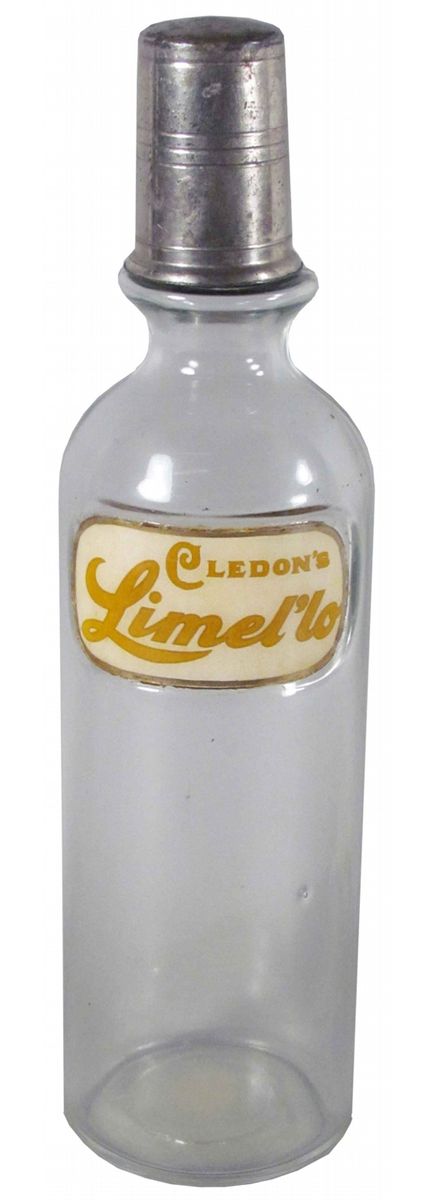 Cledon's Limel'lo Label Under Glass Syrup Bottle. No chips or cracks. Excellent condition. 12 1/2 inches tall.