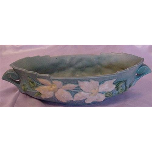 Roseville 1944 line "Clematis" Console bowl 17 1/2'' long, 8 1/4'' wide. Blue, Condition is good, there is some crazing, but no chips or cracks.