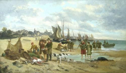 <B>Artist:</B> Clement Quinton (French, 1851-1920)<BR><B>Title:</B> Landing the catch<BR><b>Medium:</b> Oil on canvas<BR><b>Size:</b> 24" x 42"<BR><b>Signed:</b> Lower left 'Quinton'