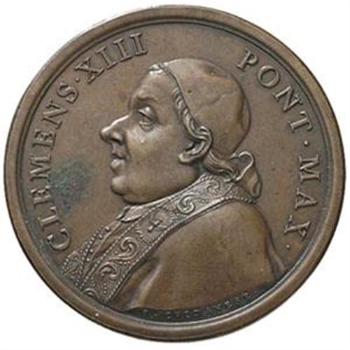 Clemente XIII (1758-1769). Medaglia s.d. Liberalitas Redvx. Pat.32. 43.00mm. Inc. F.Cropanese. AE. qSPL/SPL. Allusiva alla lotta contro i Gesuiti.