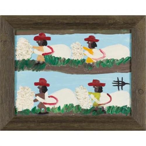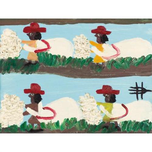 <B>CLEMENTINE HUNTER (American, 1873-1988)</B></I><BR><I>Picking Cotton</B></I><BR>Oil on board<BR>12 x 16 inches (30.5 x 40.6 cm)<BR>Signed with artist's monogram lower right: <I>CH</B></I><BR> <B>Condition Report:</B> One tiny loss to tip of impasto, minor surface grime<BR><BR><b>Shipping:</b> Requires 3rd Party Shipping (<a target="_blank" href="http://www.heritageauctions.com/common/shipping.php">view shipping information</a>)