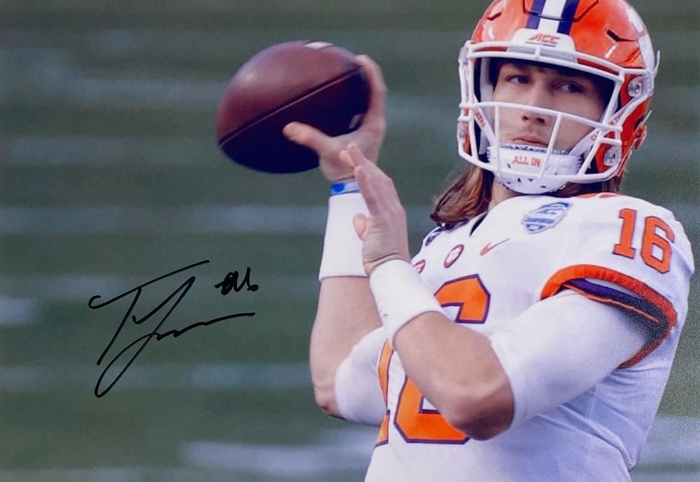 Clemson Tigers Trevor Lawrence facsimile signed photo. 8x10 inches. This item is a reprint of an original autograph