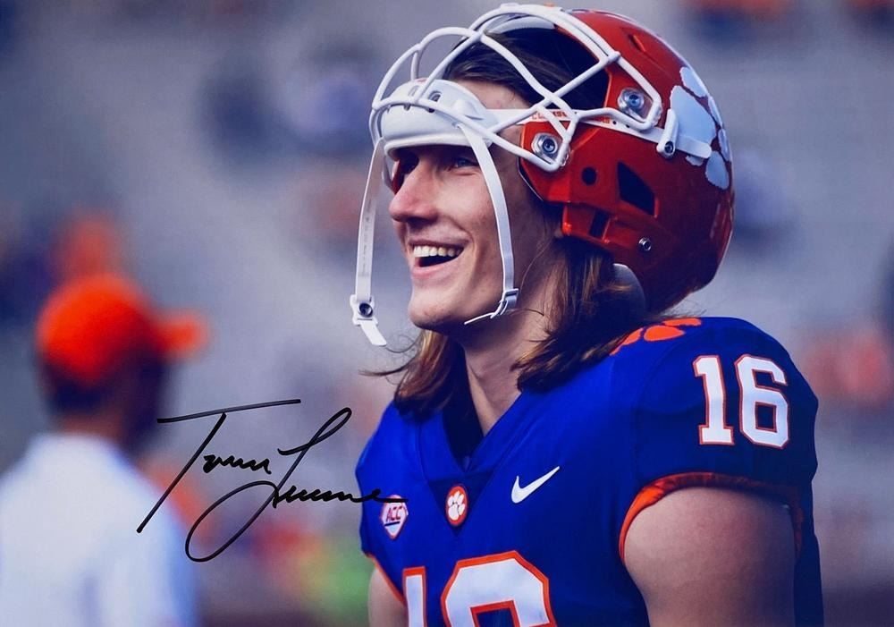 Clemson Tigers Trevor Lawrence facsimile signed photo. 8x10 inches. This item is a reprint of an original autograph