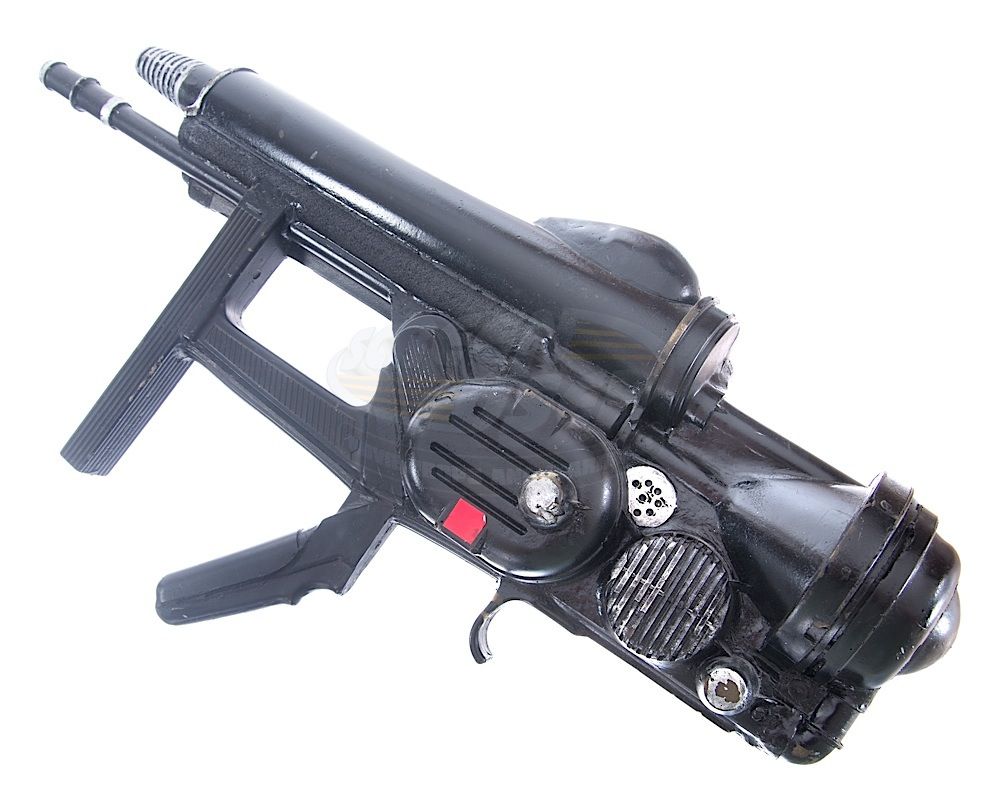 (Renaissance Pictures, 2000-2001) This prop gun was custom-made by the production for use by various actors as "Marla's Guards" in the episodes titled "In Your Boots" and "No Thanks for the Memories". The gun is made of hard rubber and has minor wear from use. Measures 23.5" in length.