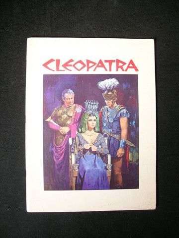 This is a movie program for the 1963 release of the epic Elizabeth Taylor/Richard Burton film 'Cleopatra'. The program is 48 pages long and is filled with behind the scenes photos and information including the story of Cleopatra, as well as mini-biographies for each actor. (measures approx. 12 1/2"x 9 3/8")