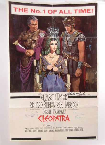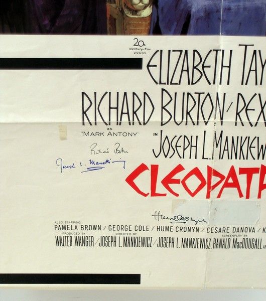 Cleopatra Taylor, Burton, Harrison, Mankiewicz Signed Poster
