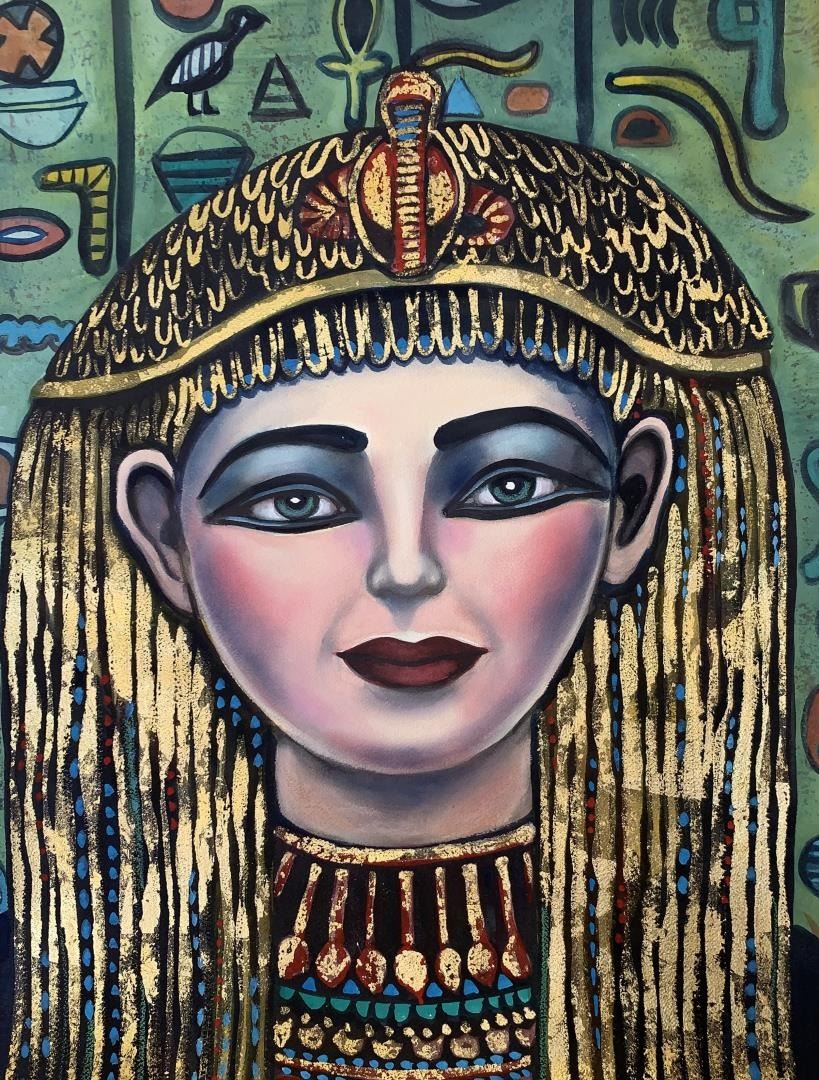 A pastel & watercolor portrait of the young Egyptian Empress who tried to unite with the Roman Empire by her guile. 24x18" on deckled fine art paper, by Anonymous