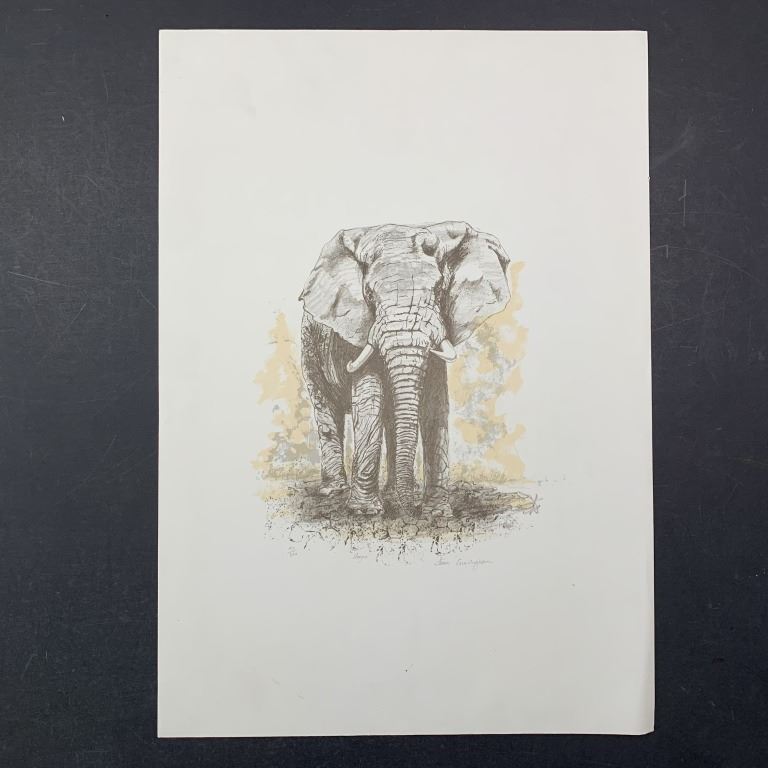 Cleve Cunningham's "Rogue" Limited Edition Print. A study of an elephant. This piece is signed in the lower right, numbered 153/300 in the lower left and titled in the lower middle. It is in very good condition.