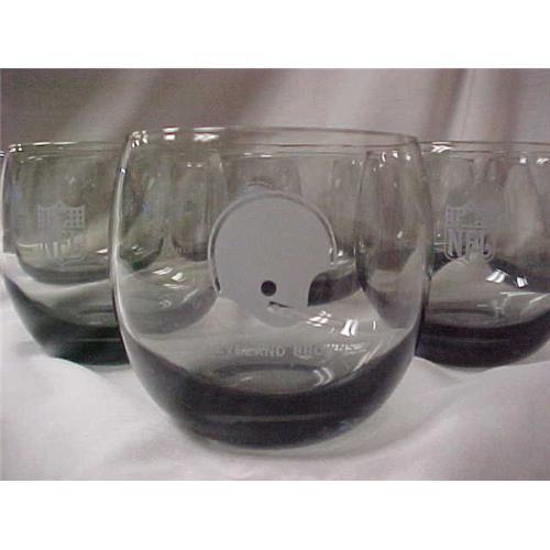 This glass set is a great piece of Browns memorabilia. It has a Browns football helmet on the front, and an NFL logo on the back. 3.25? tall and roughly 3? wide. In new condition. Maker and year are unknown.