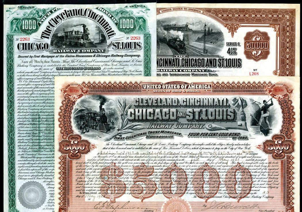 Lot of 3 bonds, Includes 1890, $1000, Coupon bond; $5000, 1925, Registered and $50,000, 1927, Registered, all either punch or ink cancelled,