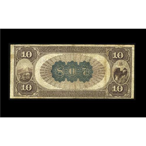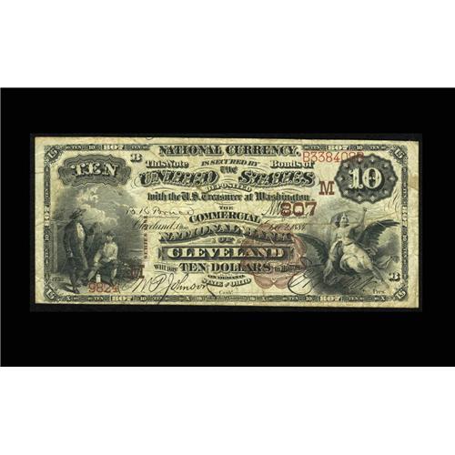 <B>Cleveland, OH</B></I> - $10 1882 Brown Back Fr. 480 <B>The Commercial NB</B></I> Ch. # (M)807<BR>An extremely rare Cleveland bank which issued First Charters and Brown Backs only before liquidating in 1904. The Kelly census shows just three examples extant from here, a First Charter $50 and two Brown Backs. Sharp <B>Fine+.</B></I>