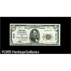 <B>Cleveland, OH</B></I> - $5 1929 Ty. 1 <B>The Central NB </B></I> Ch. # 4318<BR>A fresh and original <B>Choice About Uncirculated</B></I> likely to sell for more than its purely technical grade would imply. Fresh and original and a note that likely never circulated, but was simply stored somewhat carelessly and picked up scattered handling indications over the years. Lot:16947