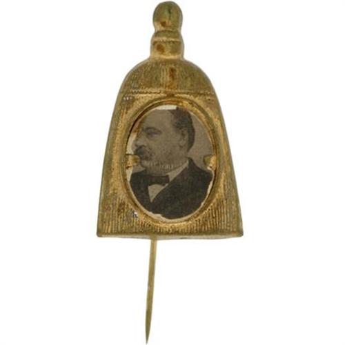 <B>Grover Cleveland Portrait Mounted in a Brass Backing Shaped Like a Broom.</B></I> Made to promote Cleveland for President in the 1884 election, this broom shape symbolized Cleveland "making a clean sweep" or "cleaning house" once elected. Very nice condition, some folding of the photograph. Measures 15 mm x 30 mm. <BR><BR><b>Shipping:</b> Miscellaneous Collectibles, Smal (<a target="_blank" href="http://www.heritageauctions.com/common/shipping.php">view shipping information</a>)
