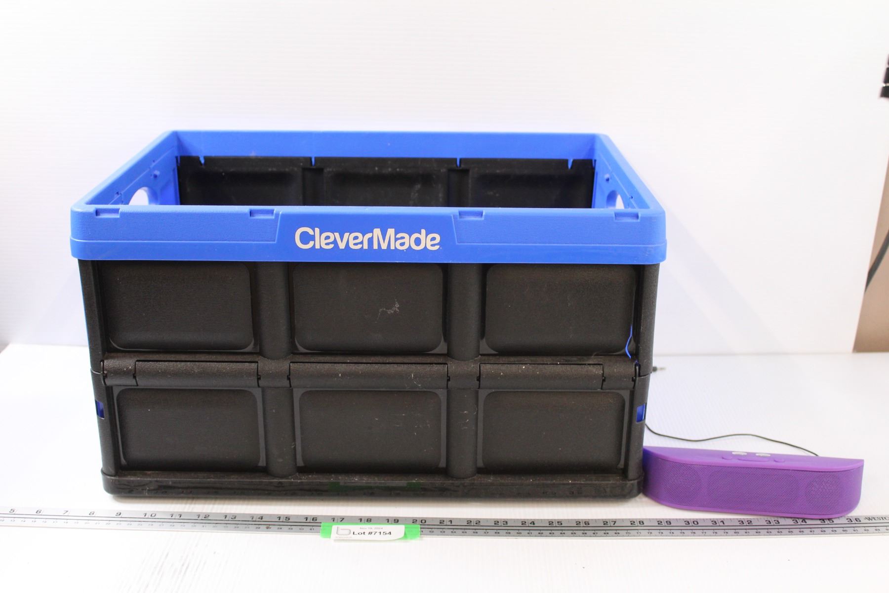Clever Made Folding crate - 21.5"x14"12" & Bee-Bop Bluetooth speaker, as is