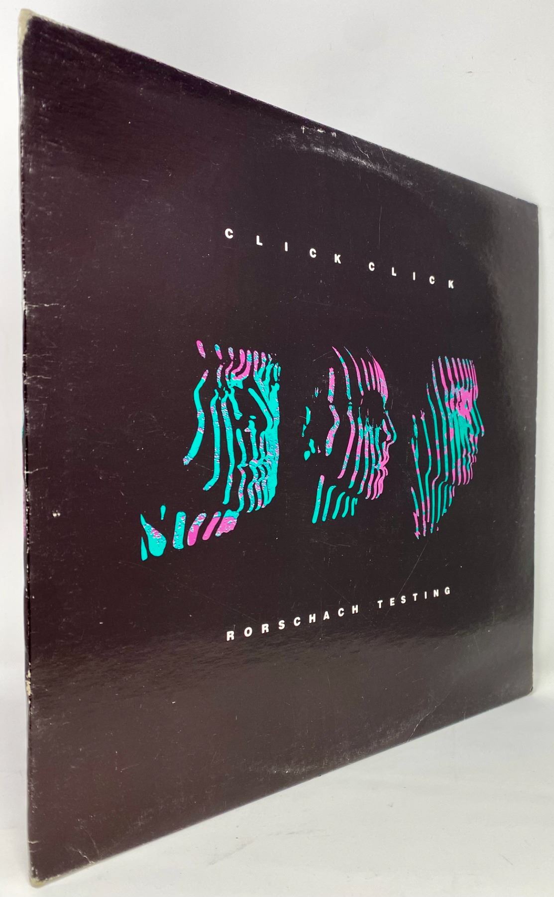 1986 industrial/synth-pop LP 'Rorschach Testing' by Click Click, released on Play It Again Sam Records. VG condition with bold cover art. A cult favorite from the darkwave/EBM era, highly sought after by genre collectors.
