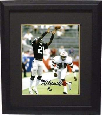 Cliff Branch spent his entire 14-year National Football League career with the Oakland/Los Angeles Raiders, winning three Super Bowl rings in Super Bowl XI, Super Bowl XV and Super Bowl XVIII. Branch holds the distinction of being the only wide receiver to be a member of all three Raiders Super Bowl teams. Cliff Branch has hand signed this Oakland Raiders 8x10 Photo. Certificate of Authenticity from Athlon Sports. Custom Black Mat and Premium Black Color Framed as shown.