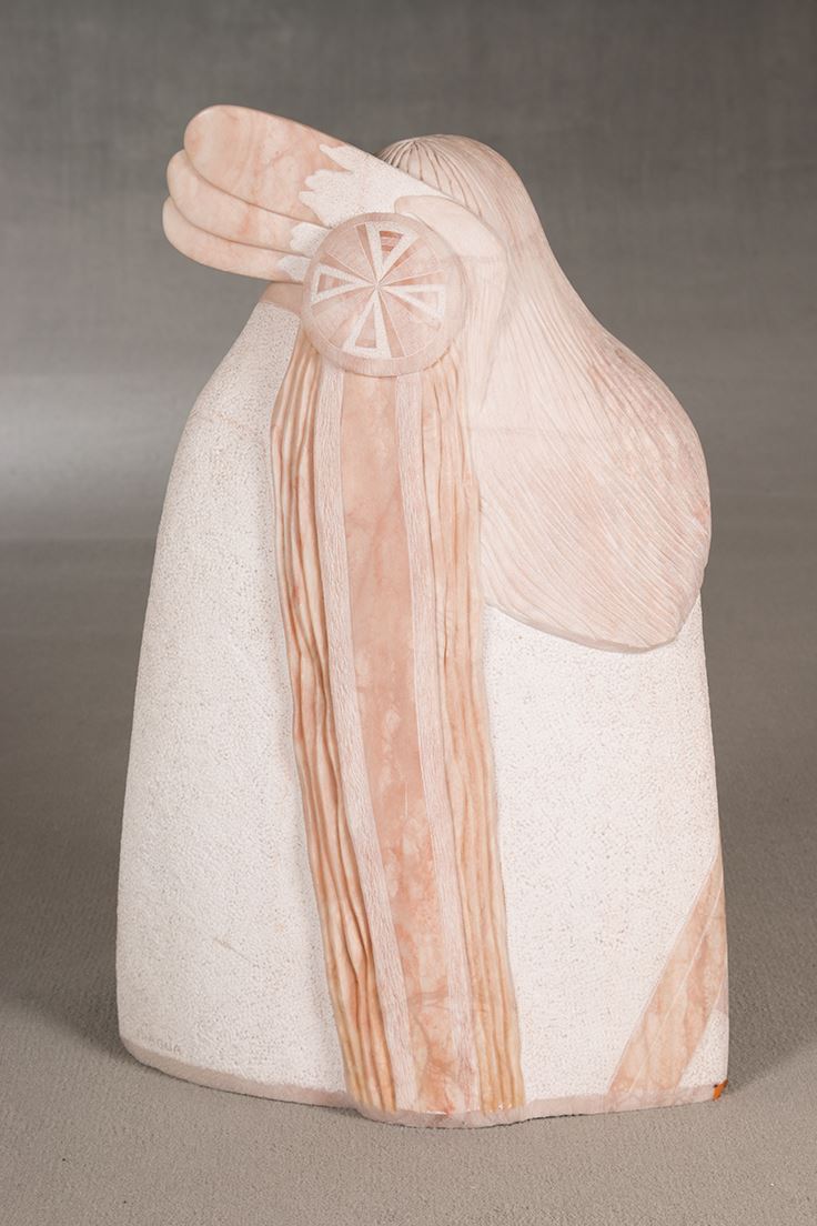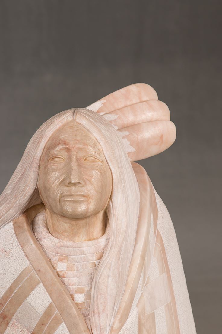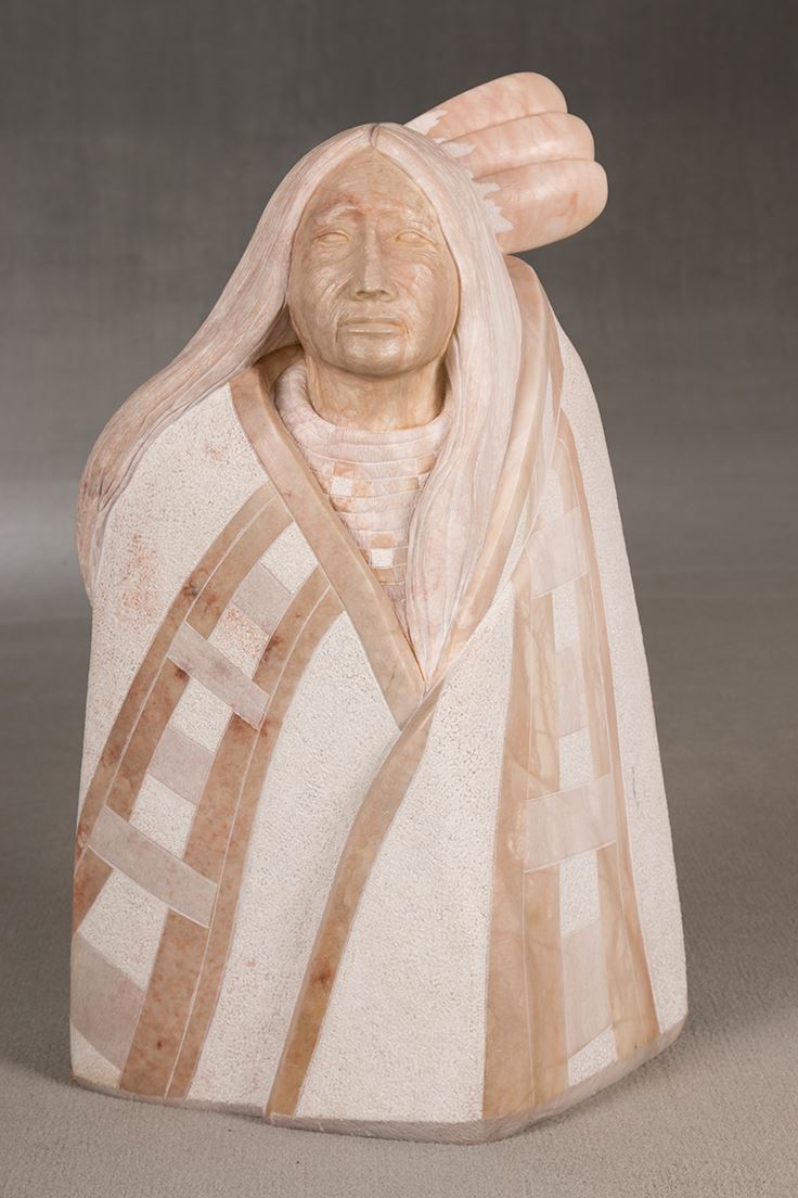 Cliff Fragua (20th century). Chief. 27" x 15" x 11" alabaster. Inscribed: C FRAGUA. Provenance: This piece was given three awards from the 1980 SWAIA Annual Indian Market show in Santa Fe, NM, including Best of Class, Best of Division and First Place.
