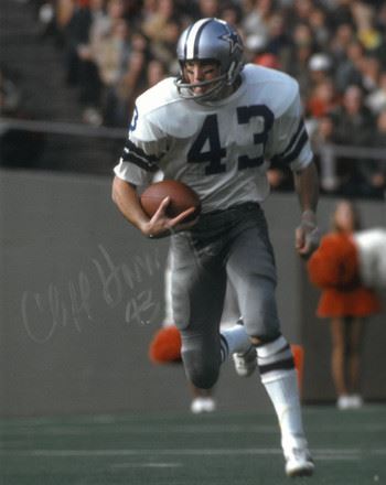 Cliff Harris was not chosen in the 1970 NFL draft, but the Cowboys invited him to training camp and he signed as a free agent. He beat out Cowboys third-round draft choice Charlie Waters (who did not crack the starting lineup until the retirement of Cornell Green following the 1974 season) for the starting free safety position his rookie year. Military service caused him to miss the second half of the season, although he returned in time for the Cowboys' victory in Super Bowl VI over the Miami Dolphins and never relinquished the position after 1971. He eventually teamed up with Waters to form the top safety duo in the NFL in the 1970s. Harris was nicknamed "Captain Crash" by his teammates for his punishing hits and reckless pursuit of ball carriers and was also described as a "rolling ball of butcher knives" by hall of fame head coach George Allen. Cliff Harris has hand signed this Dallas Cowboys 8x10 Photo #43. Certificate of Authenticity from Athlon Sports Collectibles.