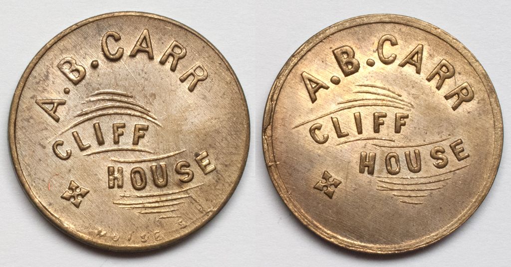 A. B. Carr / Cliff House. Reverse same. Curved lines are very strong on this token. City: EtnaCounty: SiskiyouState: CADate: