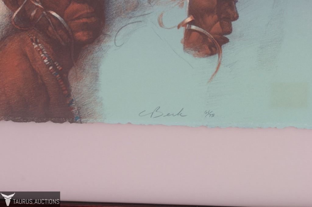 Item/Description: "Deer Dance Night" numbered lithograph. Pencil signed and numbered lower right: C. Beck 61 / 75. Image depicts a Native American Navajo Ceremony.