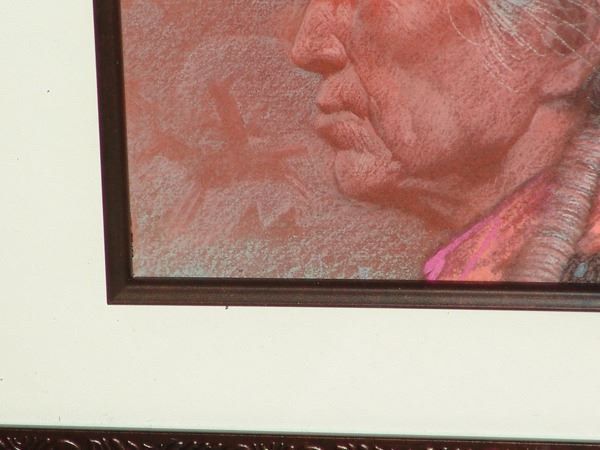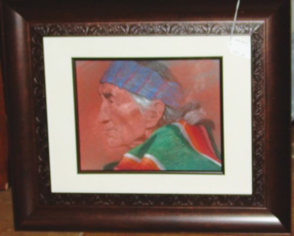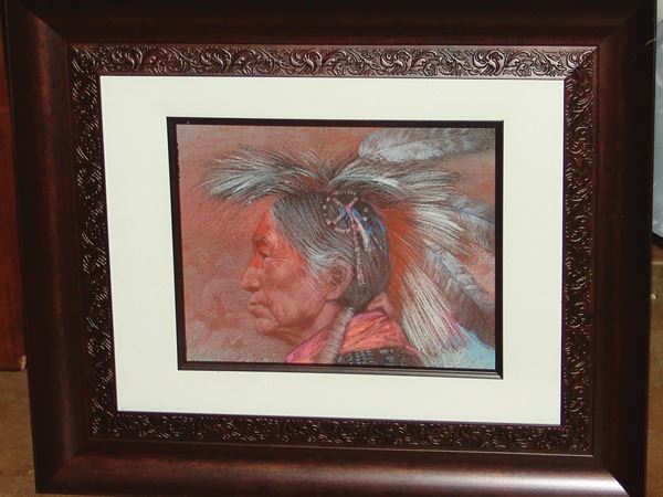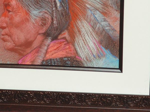 Pair of beautiful signed (under mat) original pastels on brown paper, both profiles of native men. Very good condition, custom matted in matching frames.Ca.1980s8" x 10" (16" x 19")