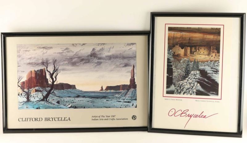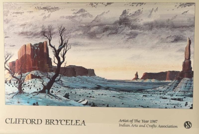 "Spruce Tree Winter" featuring Spruce Tree House in Mesa Verde National Park, 25" x 19" framed. "Winter Evening in Monument Valley" 21" x 31" framed, IACA Artist of the Year 1987 poster.