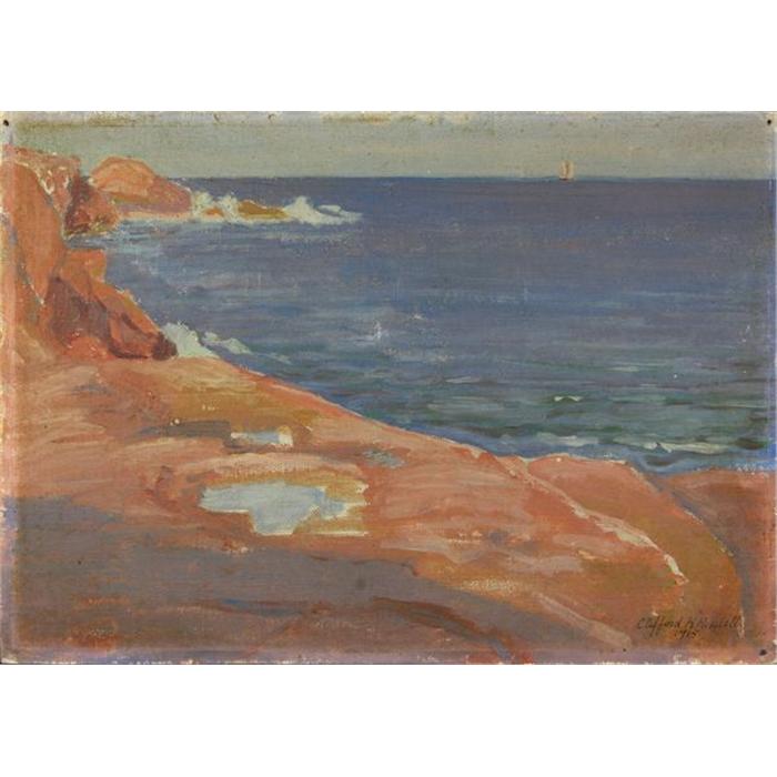 Clifford H. Riedell (American, b. 1882), Bass Rocks, East Gloucester, 1915, o/b, 10" x 14", signed.