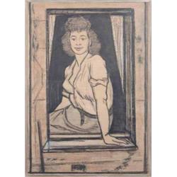 Clifford Hall (1904-1973) charcoal and coloured chalk, Woman seated at a window, 18 x 13 ins. £200-300