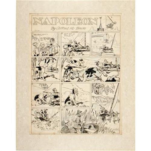 <B>Clifford McBride - Napoleon Sunday Comic Strip Original Art, dated 12-9-34 (Arthur J. Lafave, 1934).</B></I> Uncle Elby's wild prairie schooner ride is full of the action-packed slapstick that Clifford McBride excelled at -- it's a masterpiece of comic strip art. The image area of this strip measures 16.5" x 21.5", and the art is in Very Good condition. <BR><BR><b>Shipping:</b> Flat Material, Large (<a target="_blank" href="http://www.heritageauctions.com/common/shipping.php">view shipping information</a>)